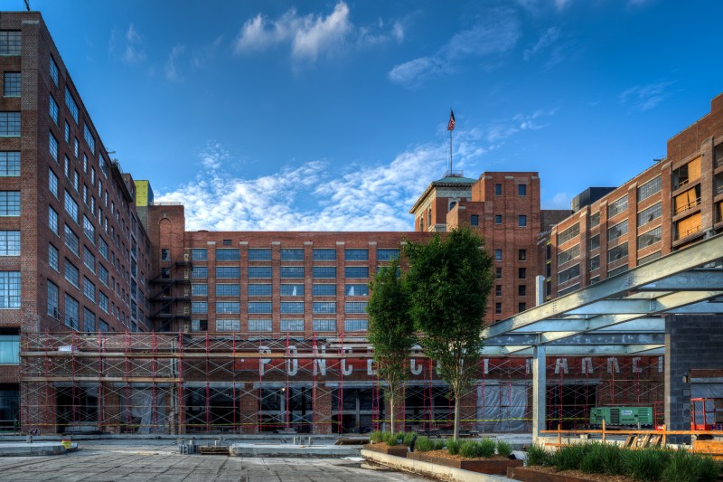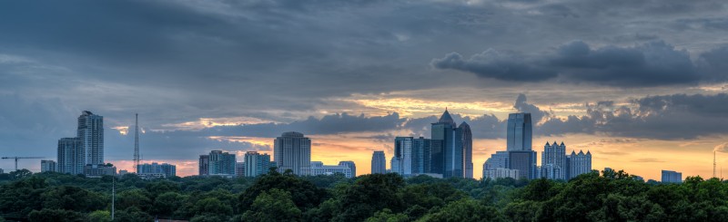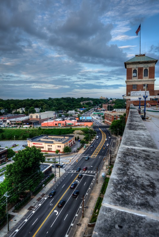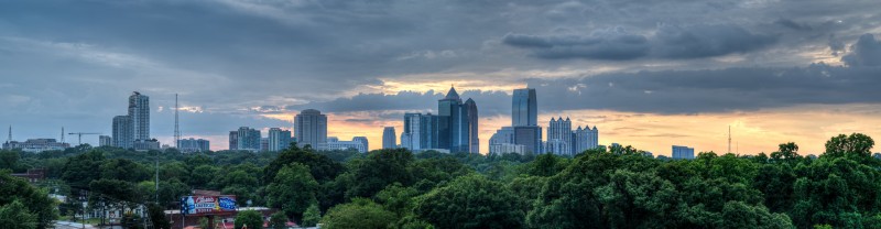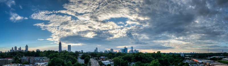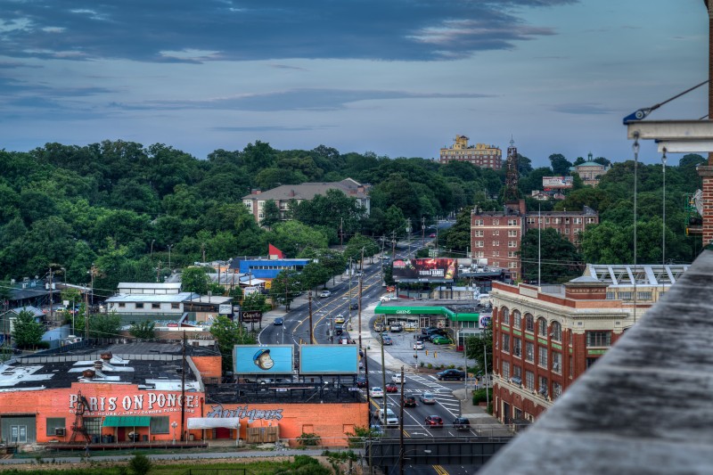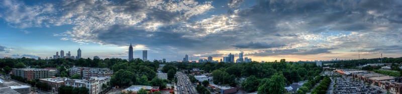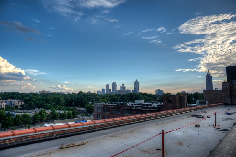 In the fall of 2014, Jamestown Properties should be ready to open the first phase of the largest live/work/play redevelopment since Atlantic Station. The site of Ponce City Market is the old Sears & Roebuck building on Ponce de Leon, aka the old City Hall East. Many of the changes already made include removal of much of the old parking deck, and an installation of a “cap” over the old ground-level parking lot to bring it up to grade with North Avenue in the rear of the property. The rooftop will include a boardwalk, restaurant/pub, and entertainment such as a mini-golf course! The first phase will see several non-retail tenants and residents of the new “Flats” apartments begin moving in. Retail and restaurant spaces will open sometime in the spring of 2015. I was able to get a brief tour of the latest work and obtain a series of incredible sunset images with the Atlanta skyline.