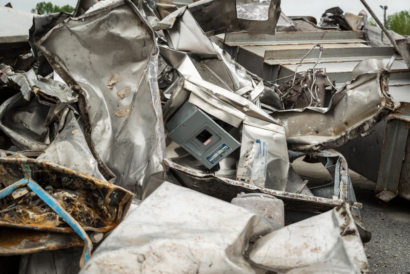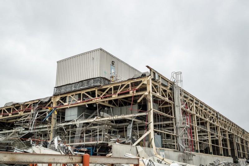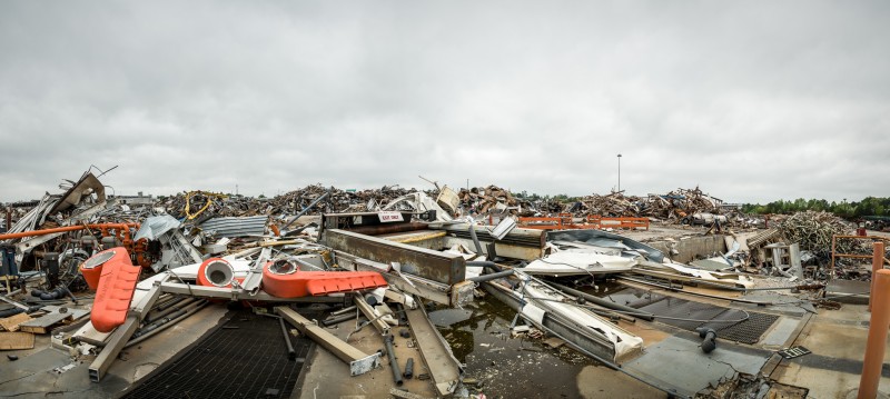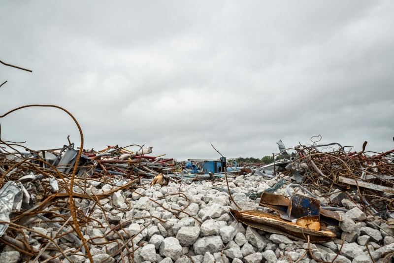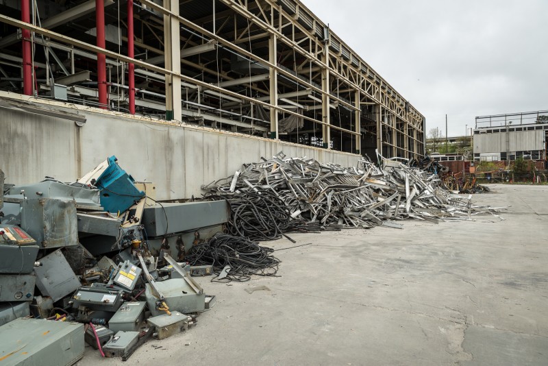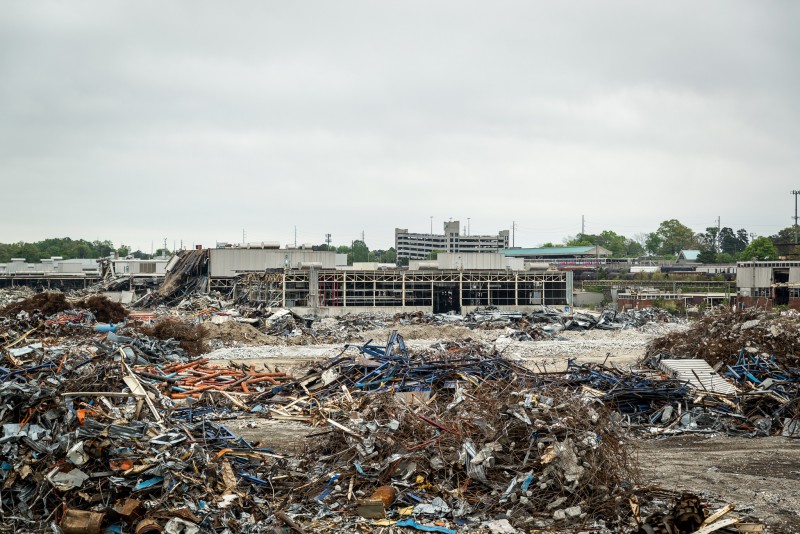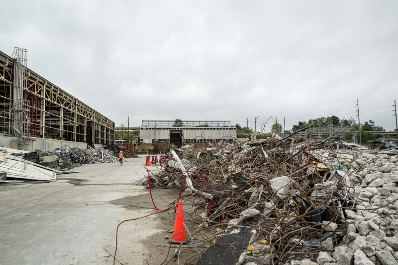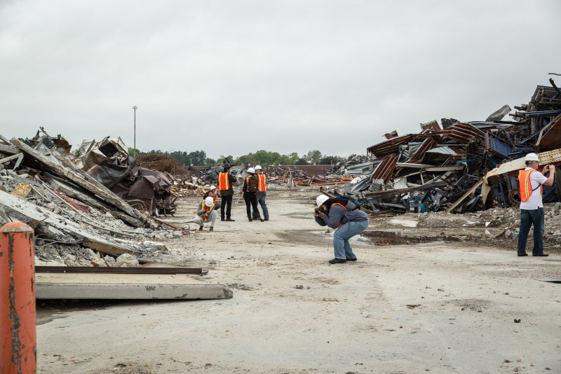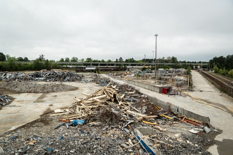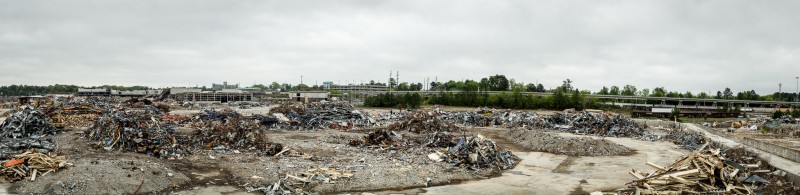The art group WeLoveATL was set to host a photowalk at the old GM Doraville plant last week, and I just barely made it to the website to sign up for one of a few remaining spots to get into the tour. Now I readily admit that for a local that enjoys a bit of UrbEx now and then, I have NEVER been to this LAND of forgotten assembly lines and robots, so to be able to see any part of it before it is completely demolished was certainly on my bucket list. Unfortunately there was little time to stop and actually explore the remaining buildings, and we mostly filed on and off a bus as we visited the piles of rubble neatly arranged into specific groups: scrap iron, rebar, sheet metal, aluminum, pipes, wiring, ducts, machinery, concrete, etc. Though that alone was a veritable goldmine of photographic opportunity and art with items such as the rebar being twisted and mangled into what looked like spaghetti–a rare feat that only heavy machinery could achieve. Eventually this location will become part of the new “Third Rail Studios” a mixed-use development that will include living and retail space, along with an actual soundstage for film productions.